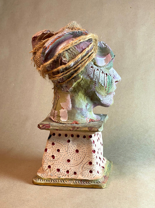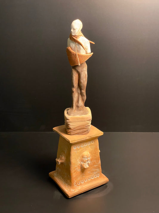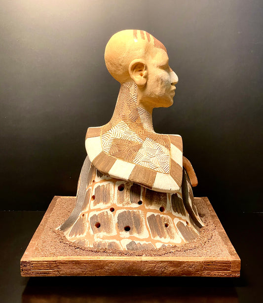 My sculptural practice begins with a central theme and a block of pliable, moist clay—an elemental medium that remains the cornerstone of my work, though I never hesitate to incorporate other materials should the design demand it. In every piece, there is a profound sense of building from the earth itself. I draw upon tones, textures, patterns, and hues to construct assemblages that possess an almost primal quality, so raw and minimally processed they seem as though they were freshly unearthed. Often, I create unique modular compositions, with each individual piece akin to a puzzle, interlocking seamlessly. The final result is a fundamental human form, poised to command the viewer's attention.